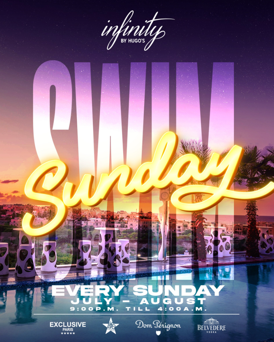 Descubre Sunday Swim, la fiesta semanal tipo rooftop pool party en Infinity by Hugo’s en St. Julian’s, Malta, organizada por Life Events Ltd.